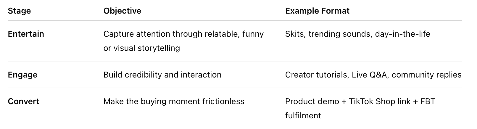 In a feed where every swipe competes with a punchline, a remix, or a skincare hack, entertainment is the only currency that earns attention — and attention is what earns sales.